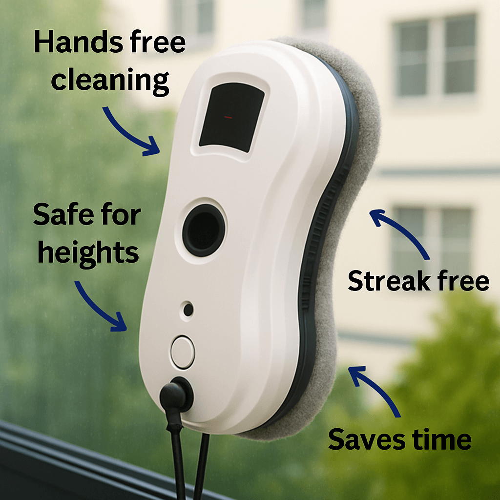 Our advanced window cleaning robot securely attaches to your glass, then navigates every inch using smart sensors—removing dirt, dust, and smudges with precision. It’s 100% hands-free, takes just seconds to set up, and requires no special skills.